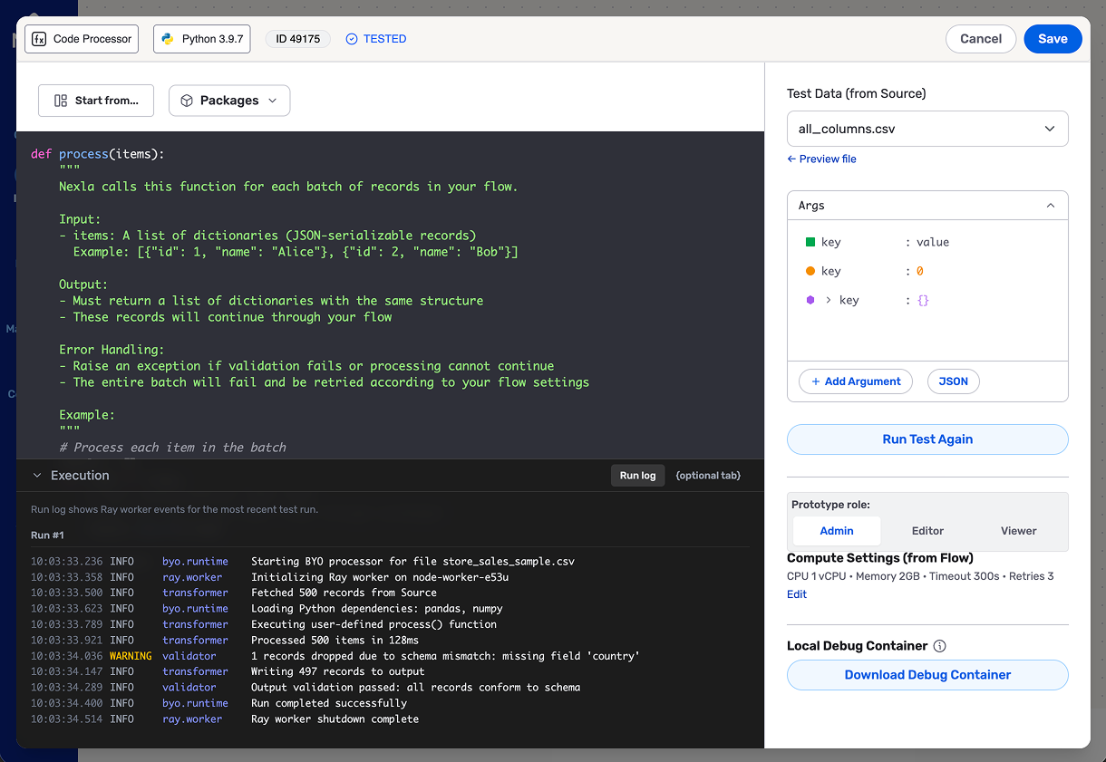 Telling them to bring the code in our UI and just run it… is always going to be painful. Debugging breakpoints will be hard.